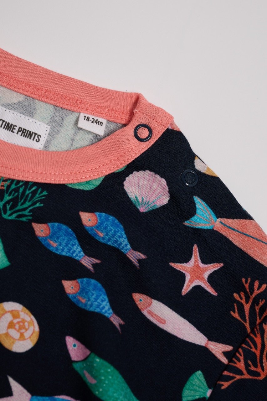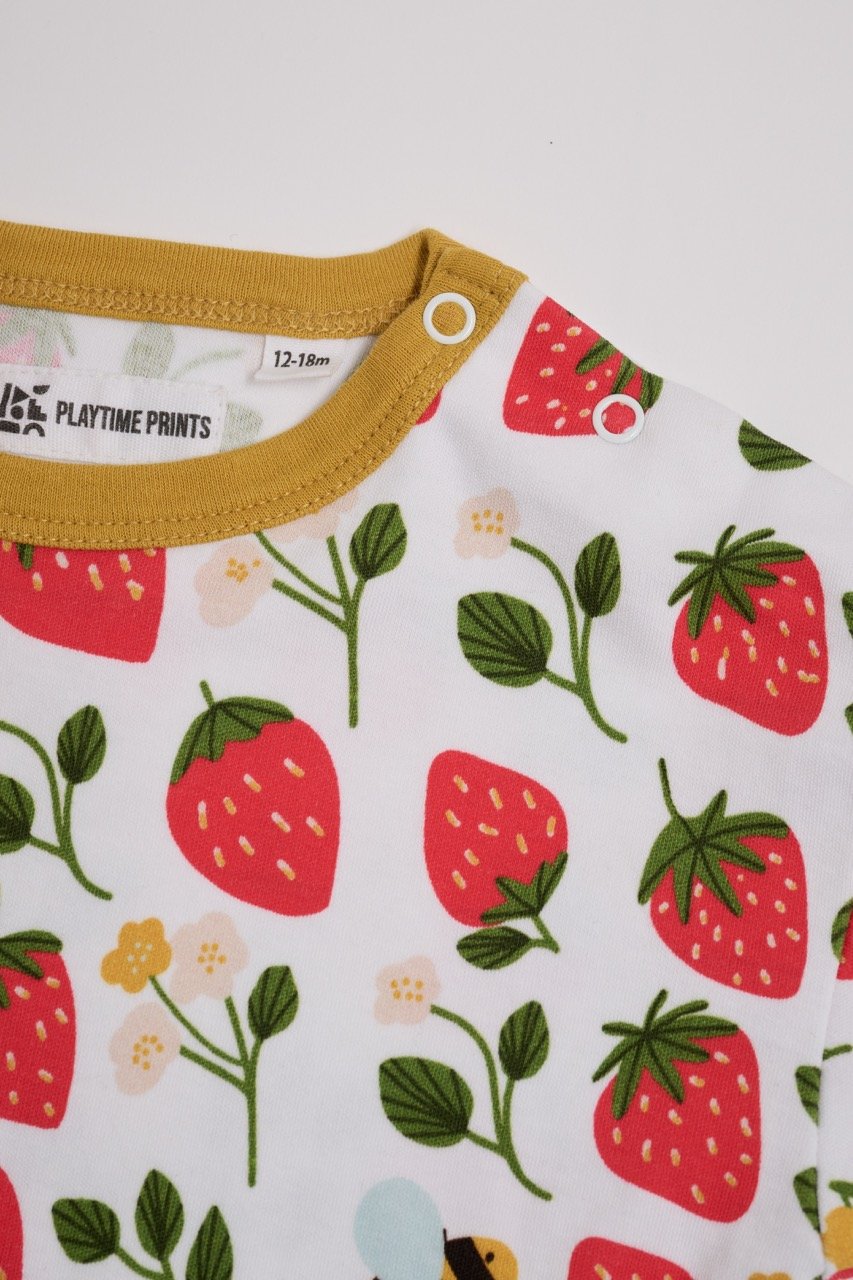 Every t-shirt is made from 100% GOTS certified organic cotton for softness and comfort, with our signature relaxed fit and contrast trim. Available in three playful prints across full print and pocket styles and featuring shoulder poppers on our 12-18m and 18-24m sizes for ease.